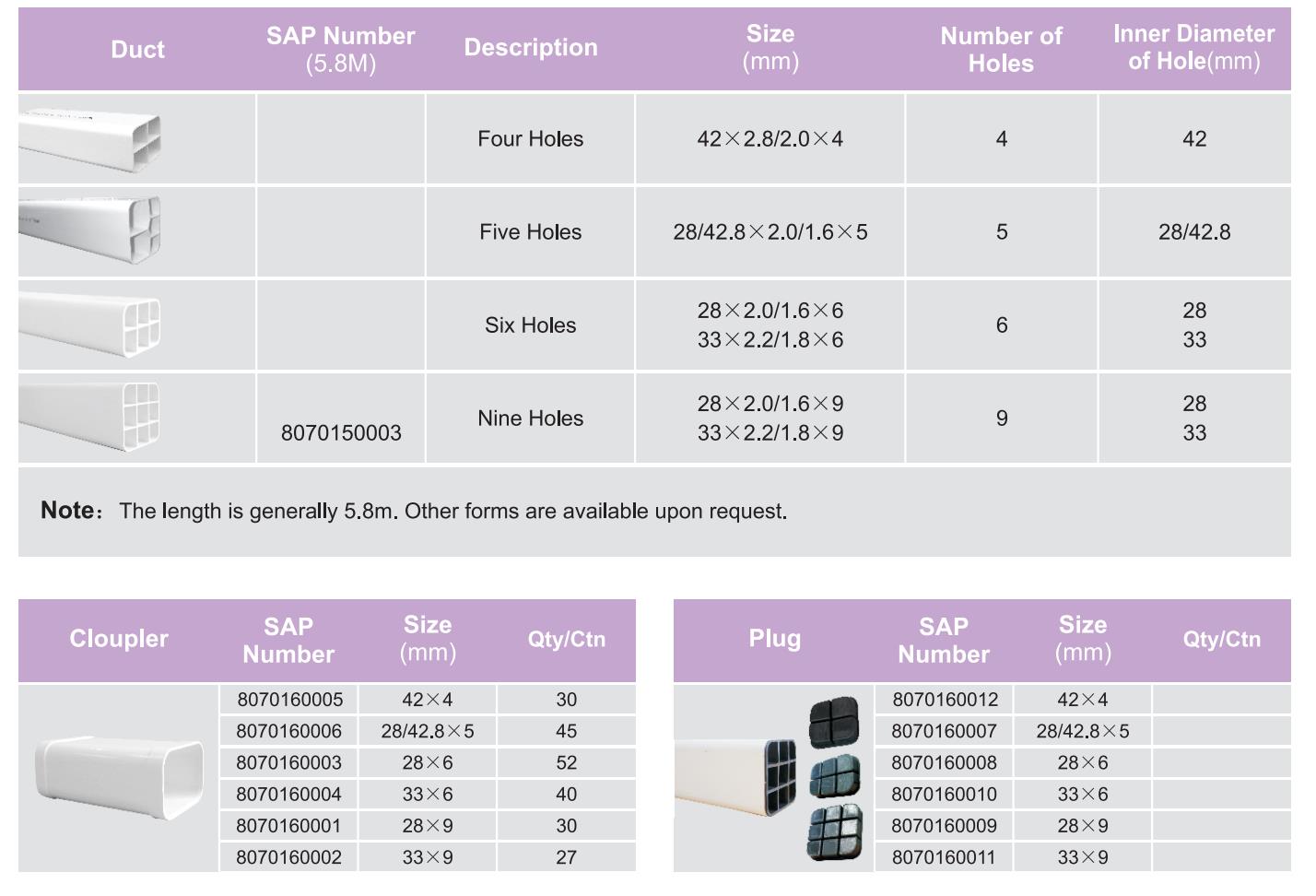 · Susunan multi-lubang yang rapi, memudahkan dan mempercepat penarikan kabel.